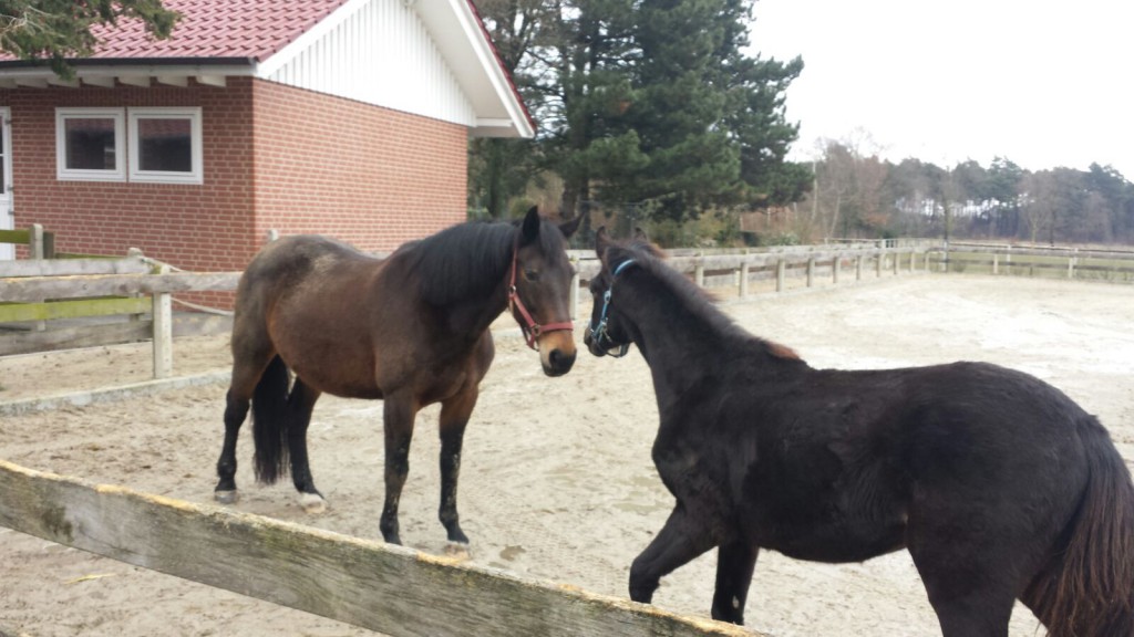 Einer unserer Schützlinge ist ein Absetzer. Wir integrieren ihn langsam in die Herde. Dabei übernehmen unsere Pferde einen Großteil der Arbeit. Soziales Verhalten wird Pferden durch andere Pferde antrainiert. Wir geben Ihnen dazu den Raum. So wird unser Reitpferd einfach so zur Ersatzmutter.